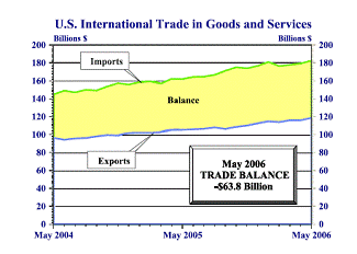 What struck me when I looked at this current data from May 2006 was that I had seen this before—well, something close to it. The department of commerce publishes the balance of trade numbers constantly. The charts pretty much look the same—except that the yellow section keeps getting bigger.