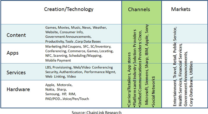 Over this coming year we will delve into this market and make sense of it. Most of the media and market views are specific to one of the segments (Figure 3). Mobile market analysis tends to look at the devices and carriers and things like traffic. And then we have the sprouting up of more magazines and web sites in the app world. But that app world is different than the applications world (as in enterprise). And then there is the PC market. Then we have industry applications segments like retail and healtchare. And then there is . . .