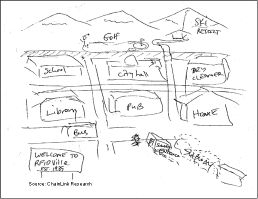 Suzy and Peter both have great health, a fact they attribute to their life in Tagnreaderville. We’ll walk through a typical weekend in their lives. Friday starts with Peter getting up and heading to work on the subway. He uses his Tagnreaderville Ride and Commute Smartly (TRACS) card to zip through the turnstile and then uses it to express pay for a bagel and coffee to enjoy while he rides to the office. During his comfortable ride, Peter reviews emails on his PDA and discovers that his favorite pub is having a Friday-night special on wines from his favorite vineyard and that his preferred Saturday morning golf tee time has been automatically booked for his foursome.